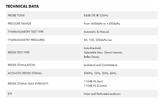 ESPIRIO is portable and operates as a trusted computer-based system. It features a high-performance automatic pump system that requires no maintenance, enabling fast and reliable testing with high-resolution tympanograms and acoustic reflex measurements, along with easy transfer of data.
